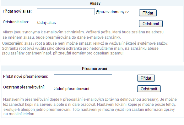 Ukázky vzhledu a fukcí webmailového rozhraní.