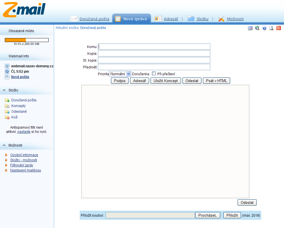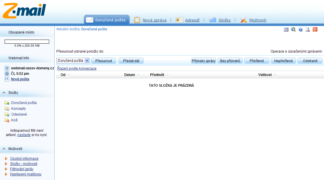 Prohlédněte si fotogalerii ukázek vzhledu Webmailu.