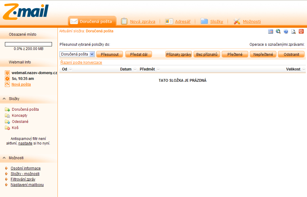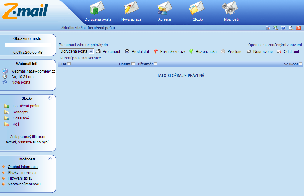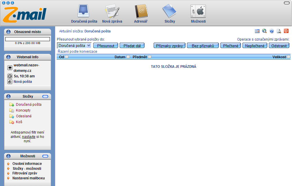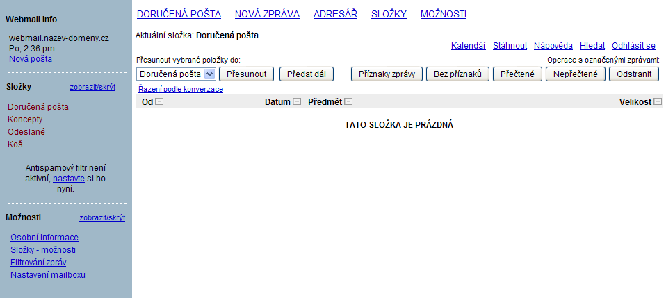 Prohlédněte si fotogalerii ukázek vzhledu Webmailu.
